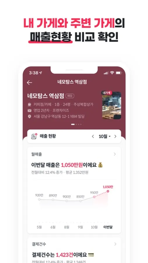 내 가게와 주변 가게 매출 현황을 확인하고 비교할 수 있는