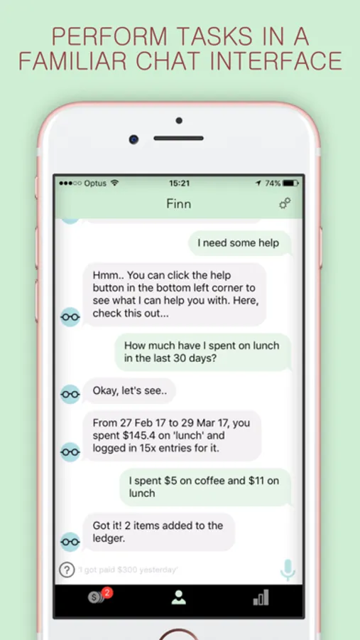 Finn is a money tracker that makes the management of your finances simple through the use of voice / text. You can perform tasks such as logging in multiple entries on a different date, or finding out how much you've spent on a specific item over a period, all by pressing a button and talking to Finn.