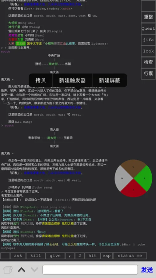 7. 智能方向盘自动判断当前房间有哪些出口( 判断条件目前是基于北大侠客行的,其它MUD可能需要在设置中设置一下支持自定义获取方向的触发条件);