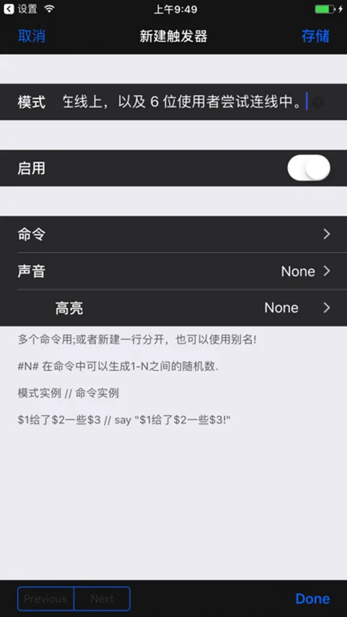 4. 触发器支持Lua脚本,内置Execute,DoAfter, print,EnableGroup等命令;