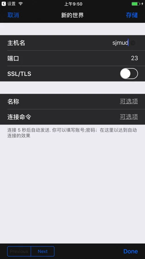 1. 同时支持多个连接,可通过自定义世界连接任意MUD。