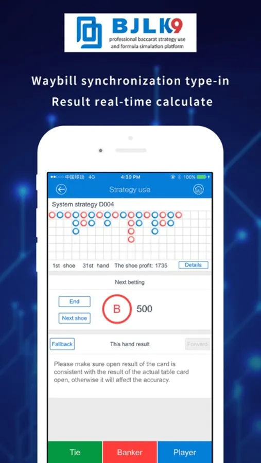 While using a strategy, you only need to type-in the open hands just following the baccarat table. The software will suggest the bet and chips for the next hand. In addition, when the shoe ends, the waybill has been recorded in the software forever. It is very convenient for you to study and analyze later.