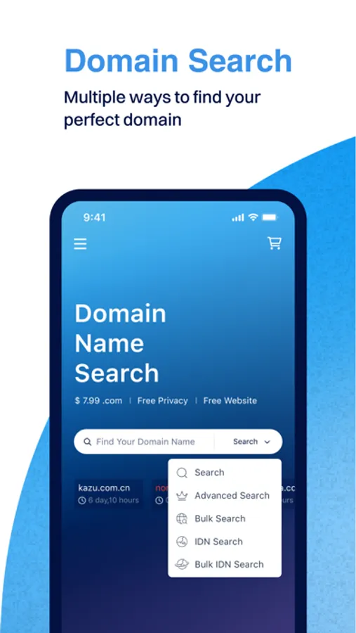 Find and register your perfect domain directly from the app. We have made it simple to search for domains and to add them to your Dynadot account. If you are looking to register multiple domains at once, use our bulk search tool to speed up the process.