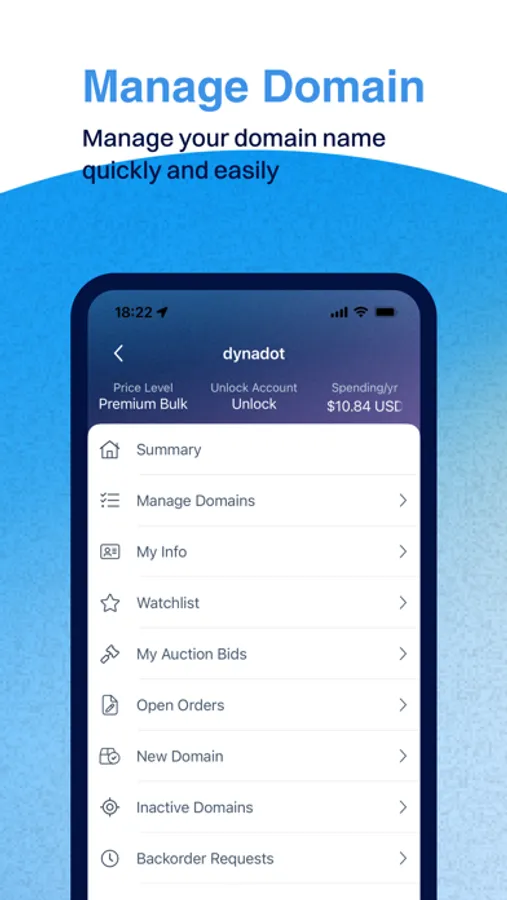 Update the settings of your domains at anytime, anywhere. Need to quickly renew your domain or check an upcoming expiration? How about update your DNS settings? Unlock a domain for transfer? You can make all these adjustments and more to any domain in your Dynadot account with a few taps.