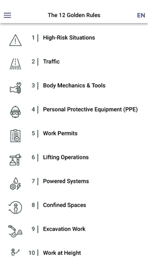Application that lists the 12 Golden Rules. The foundation of a safety culture shared by all the players in the TotaEnergies Group.