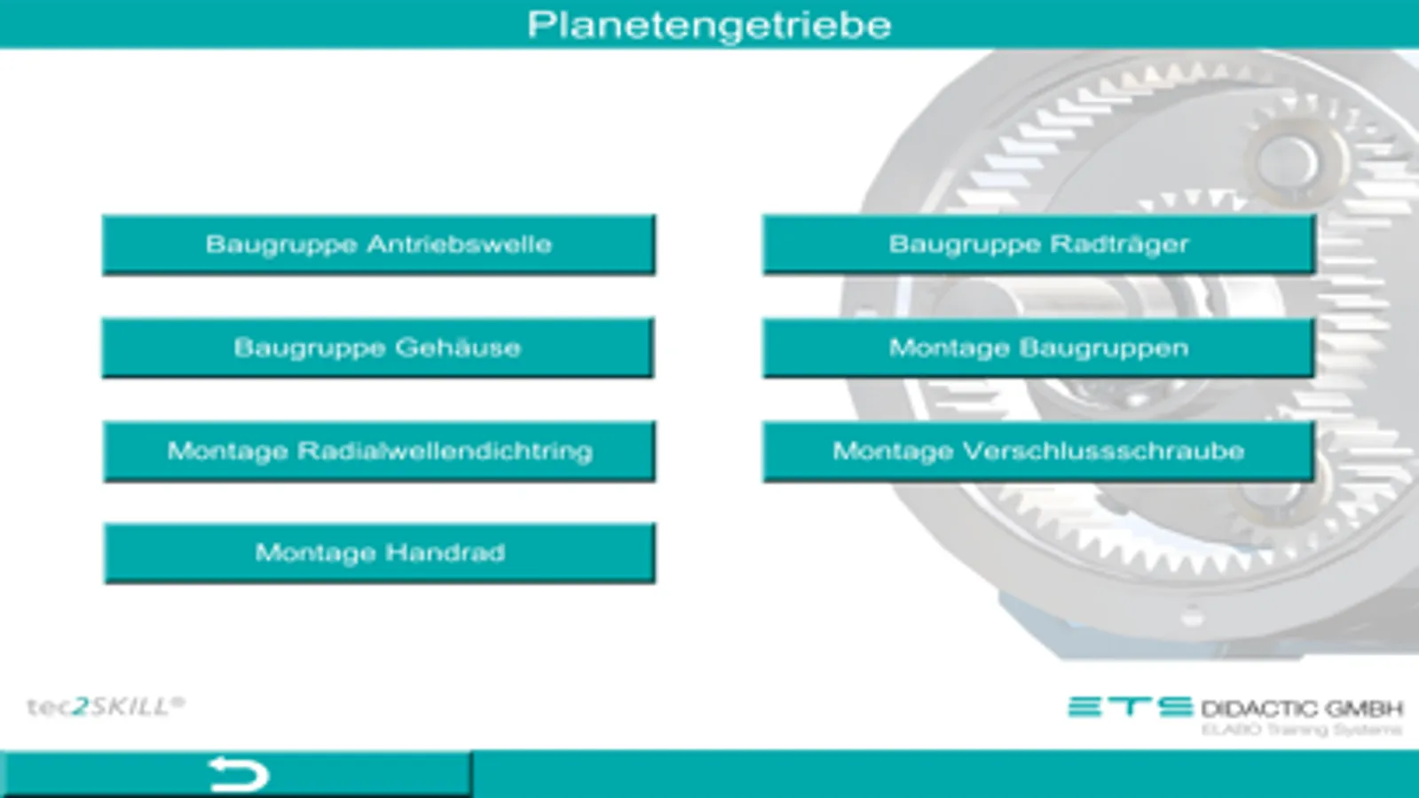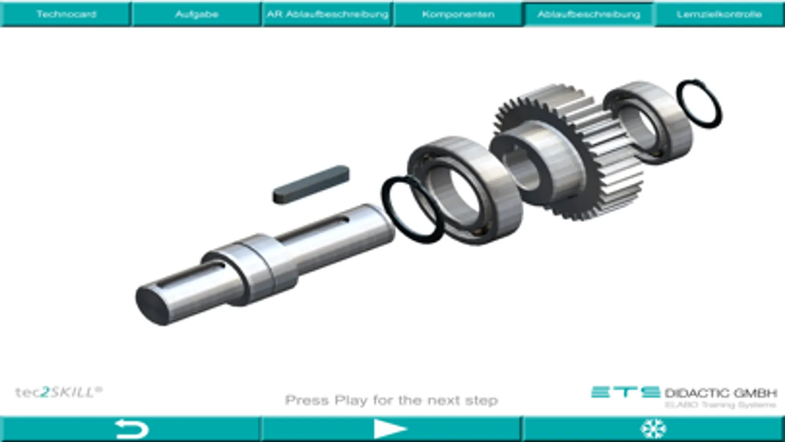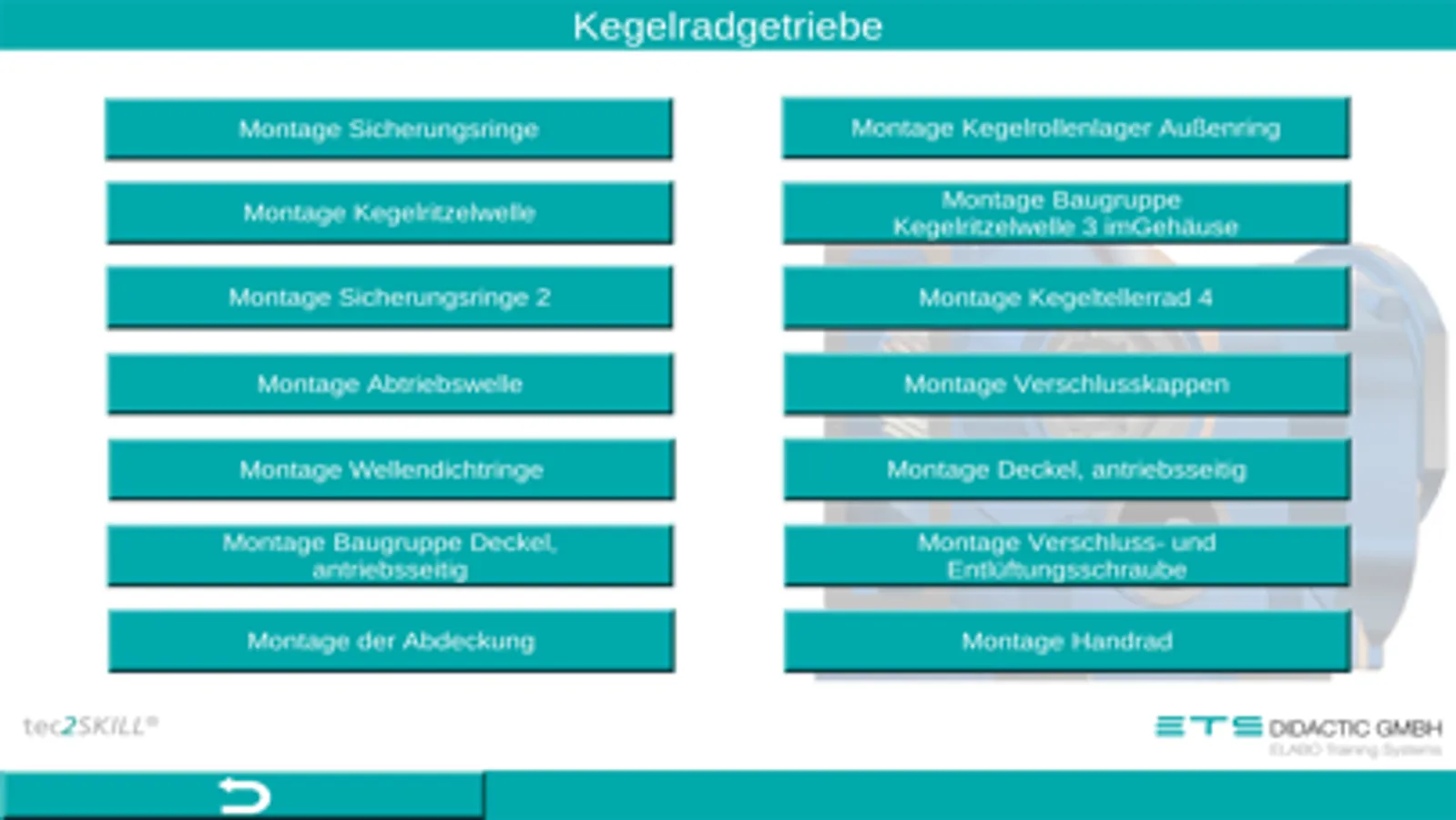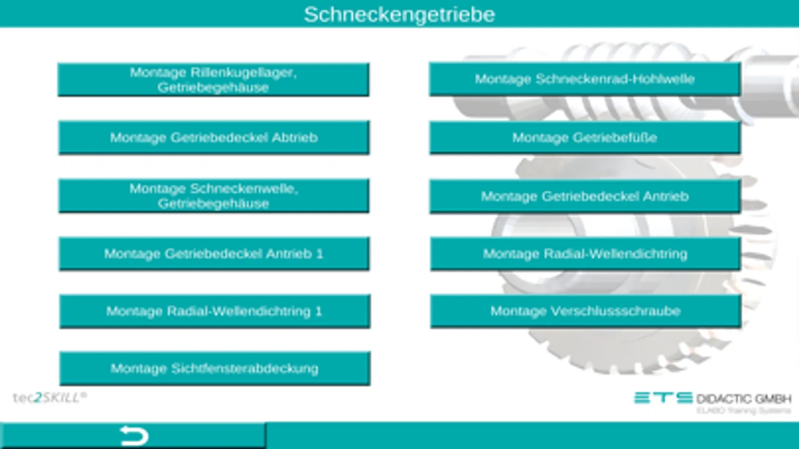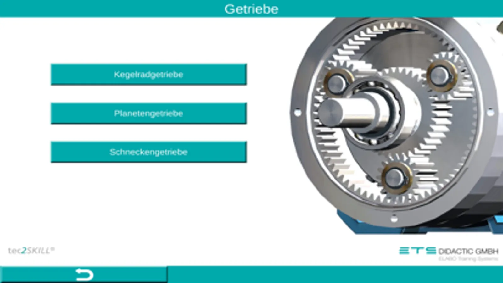 Die Lernanwendung tec2SKILL® Mechanical ist ein digitaler Assistent zur didaktischen Unterstützung im Bereich der Getriebetechnik. Es werden industrielle Getriebe-Bausätze von der ETS DIDACTIC GMBH unterstützt.