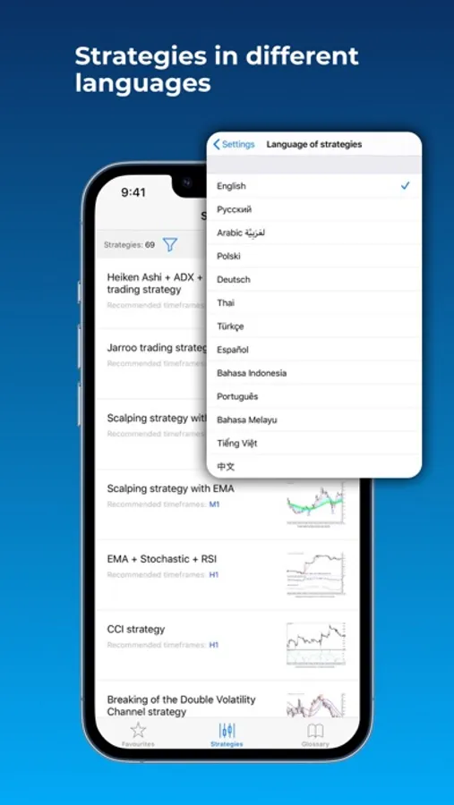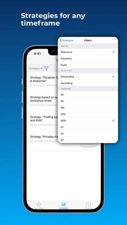 This application gives you access to all trading strategies, which have been developed by the experts and can be used by the traders, having various experience levels and using different currency pairs. These are the strategies, which fit every taste!
