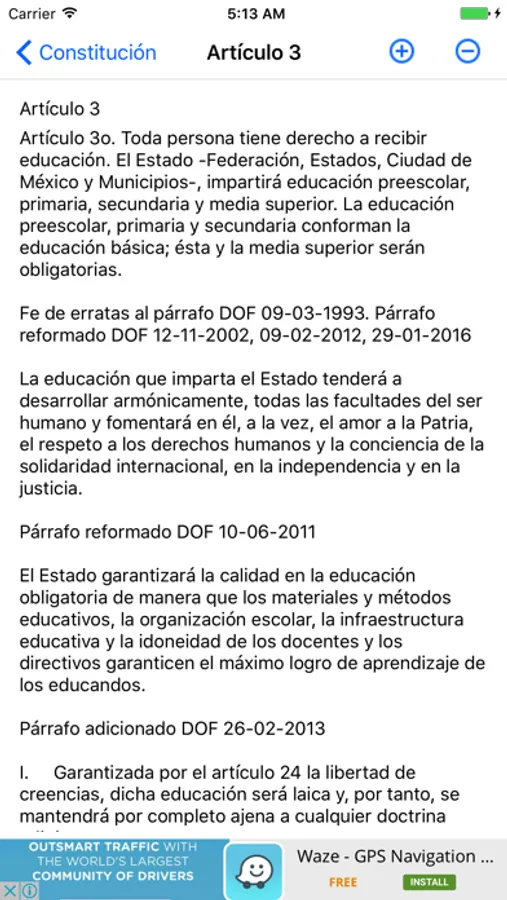 Esta aplicación contiene los artículos de la constitución política de México, la aplicación se puede actualizar automáticamente conforme se publiquen reformas en el DOF.