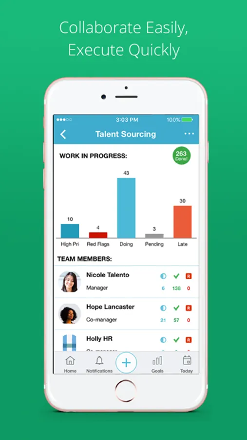 Set short range, galvanizing goals and OKRs that are on people’s radar every day. See quarter and monthly goals and KPIs from your phone. Everyone can make better execution decisions and engage on achievement.