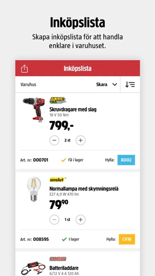 The Jula App is also perfect support to have with you in our stores. Browse through our product range and save to your shopping list. Our app helps you with stock status and shelf positioning. Use your digital membership directly at checkout. It couldn’t be easier!