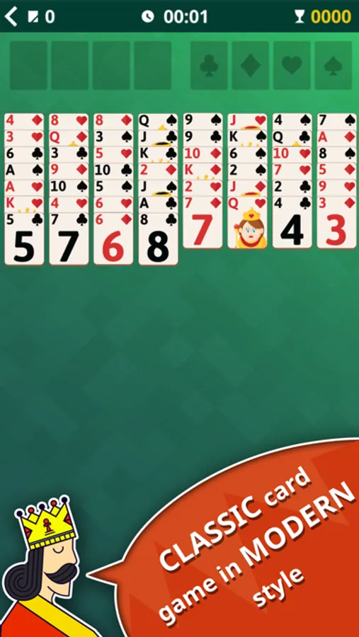 FreeCell Solitaire by BlackLight is true to the classic experience. The game is optimised for mobile with big and bold eye-friendly cards. It is available in multiple languages. The game offers an option to “Bookmark” a deal, which you can either play later or share with friends. “View Solution” feature gives you step-by-step solution of the deal.