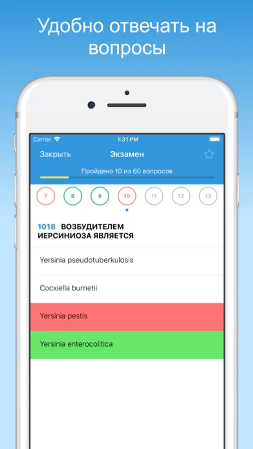 - возможность учить вопросы по блокам, а главное сохранять пройденный результат!