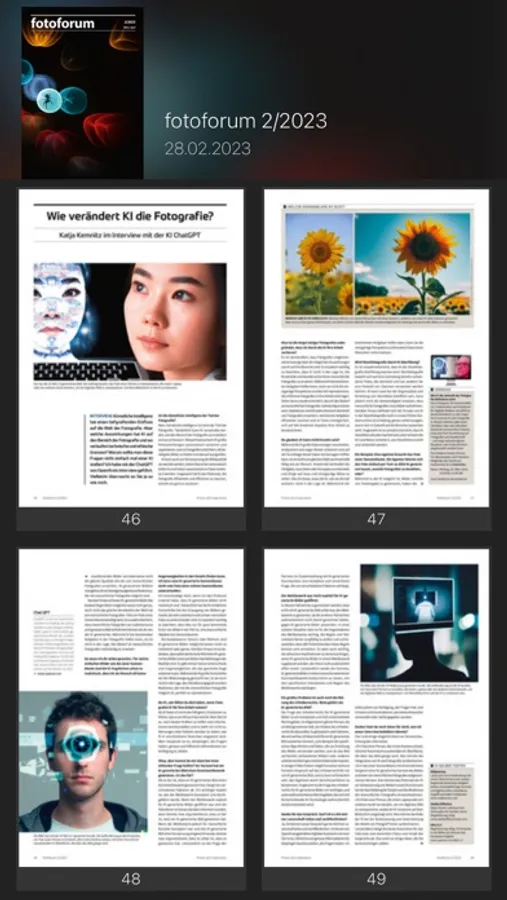 • Alle digitalen Ausgaben des fotoforum Magazins sind durchsuchbar. So finden Sie alte Artikel kinderleicht wieder.