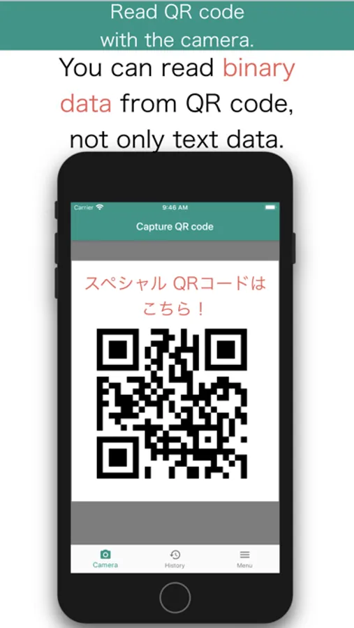 QRefine can read binary data from QR code though most of QR code reader read text data.