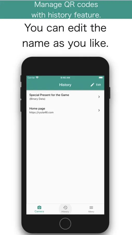 Once you read QR code, it is saved automatically and you can edit the name as you like.