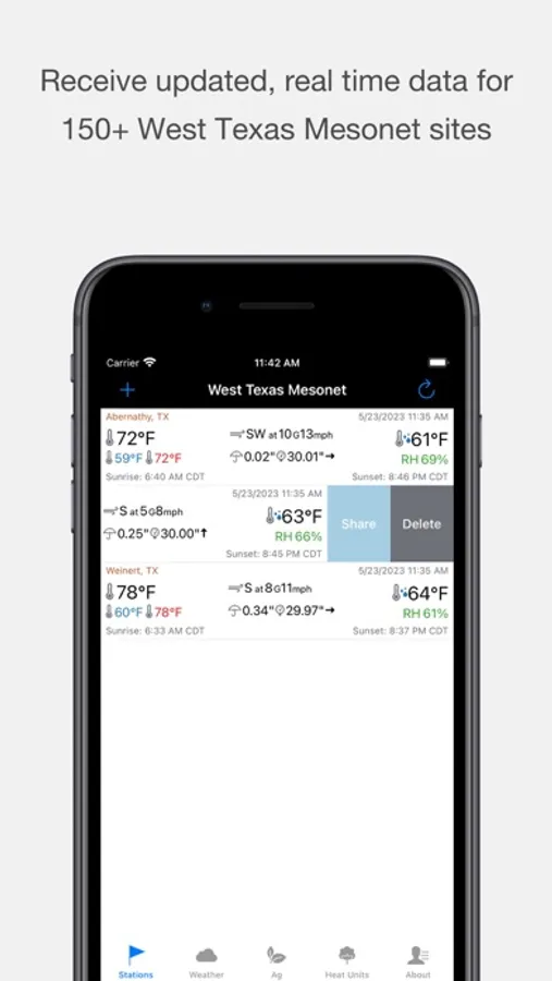 Stay connected to the weather around you using the West Texas Mesonet app. The app brings a host of precise weather information right to your phone from more than 150 sites across West Texas, eastern New Mexico and southwest Colorado, current within 5 minutes.