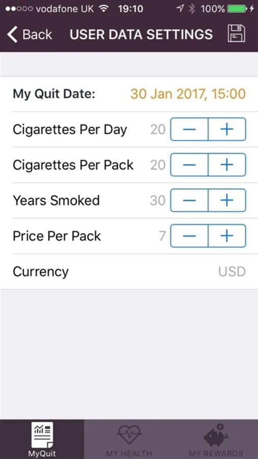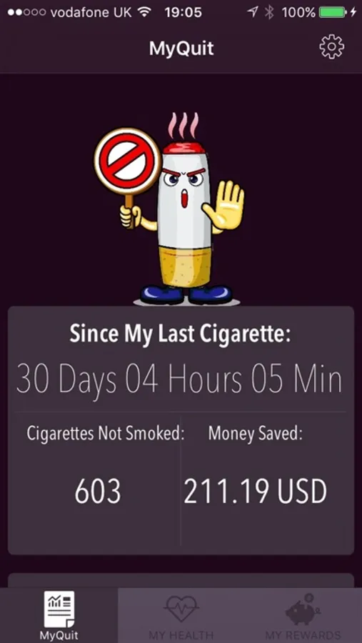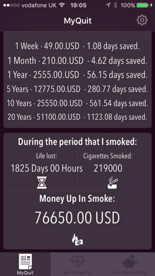 Our App will help you focus on the financial and health benefits when putting an end to your smoking habit.