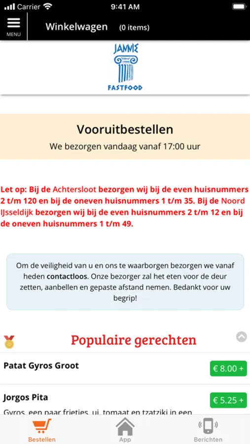 Download onze app en blijf op de hoogte van het laatste nieuws en de nieuwste acties, aanbiedingen en kortingen. Via onze app kunt u onze menukaart bekijken en direct vanaf uw telefoon uw bestelling plaatsen. U kunt via de app ook met iDEAL betalen!
