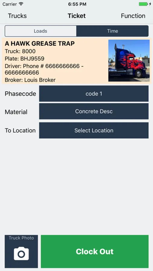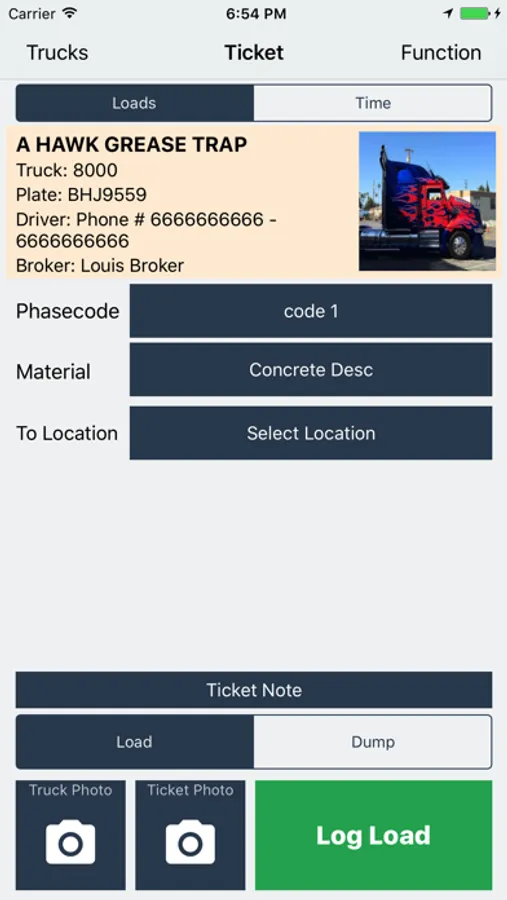 • Capture the license plate, DOT number, truck photo, driver's phone number, and more.