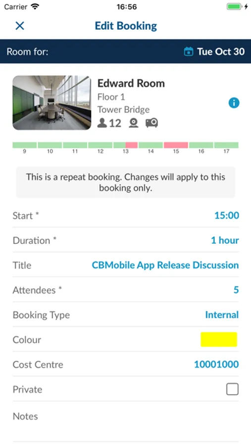 Whether it’s a room, desk or a parking space, CBMobile gives bookers greater on-the-go booking flexibility. With a sophisticated new user interface and improved user experience, CBMobile is stacked full of easy to use features, including: