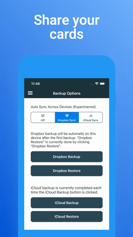 ● Cards are backed up. If you lose your phone, your stored cards can be restored via your online account