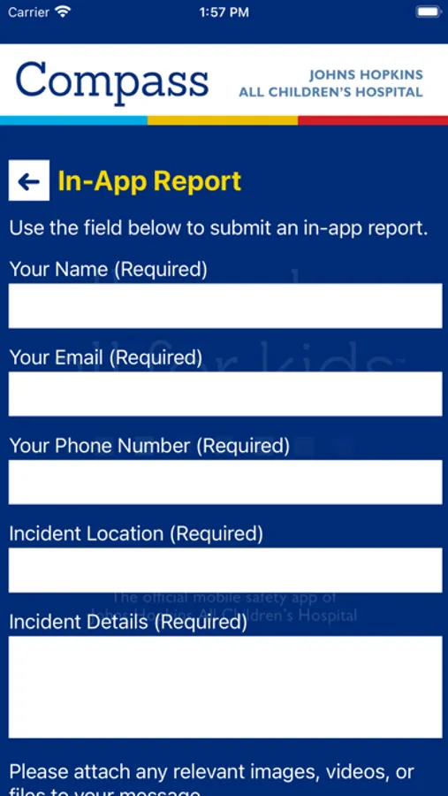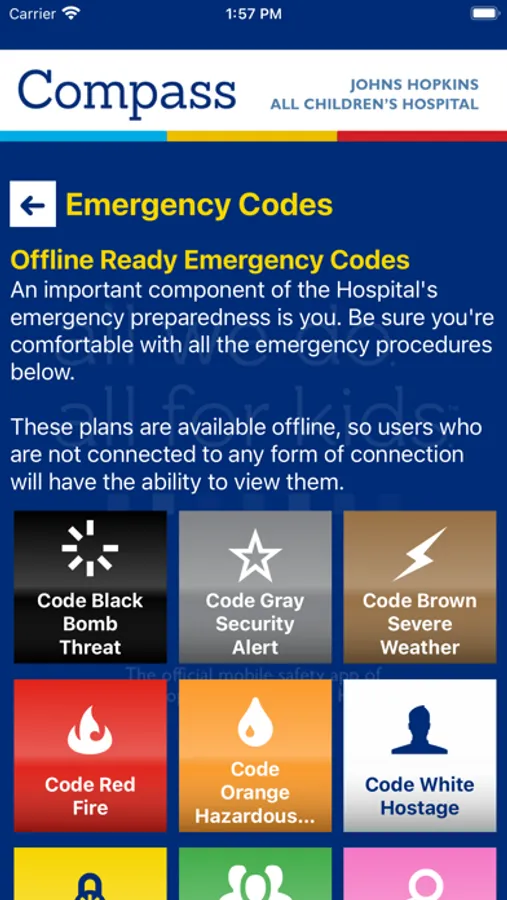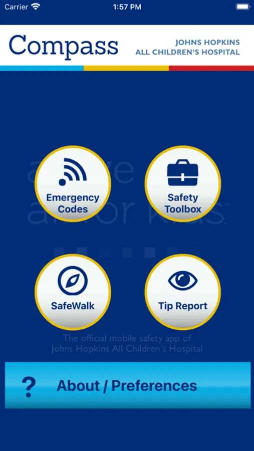 Compass is an essential tool to enhance your safety in Johns Hopkins All Children's Hospital. The app will send you important safety alerts and provide instant access to all public safety resources. Compass is the official mobile safety app of Johns Hopkins All Children's Hospital.