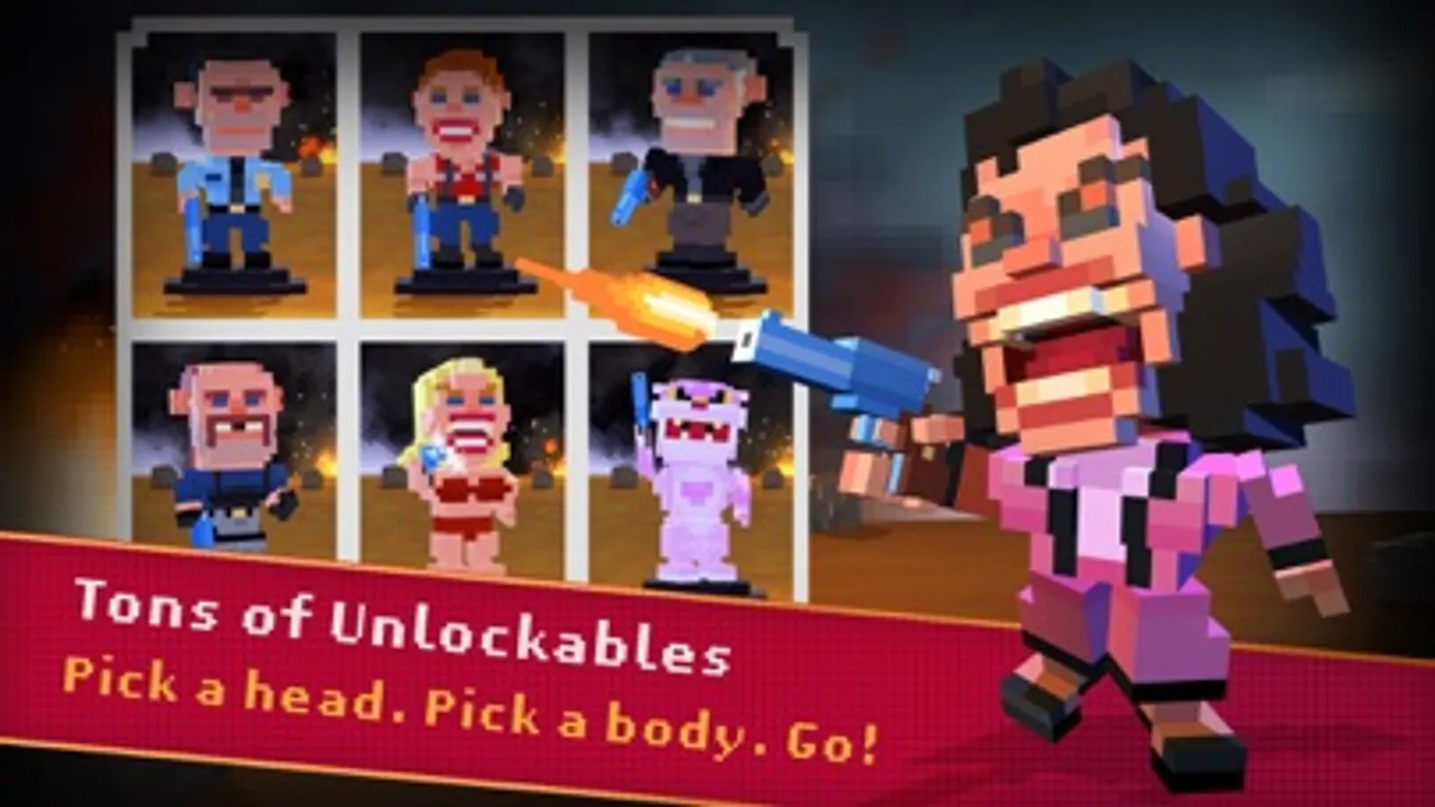 Over 100 awesome blocky character unlocks! Mix and match any head with any body creating wacky and unique looks.