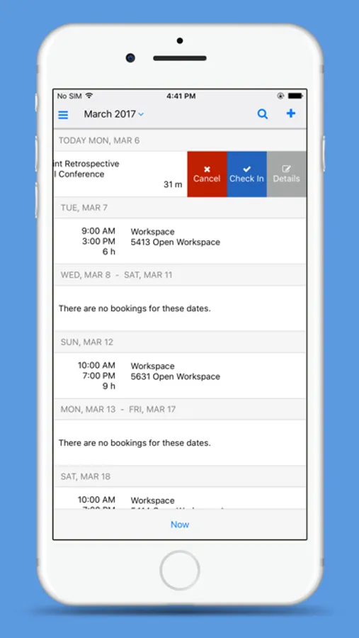 • Swipe or scan a QR code to book or check in to a room or workspace.