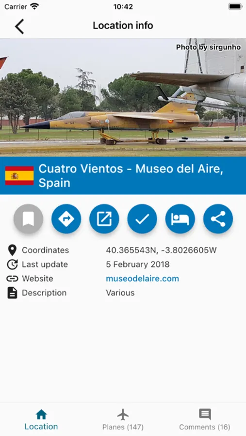 Around the world thousands of old aircraft can be found at various locations and in various conditions. In Museums, on sticks, in the middle of small villages, in use as bars and nightclubs, dumped by the roadside or quiet victims of all kinds of abuse. This is the app you need to find all of them.
