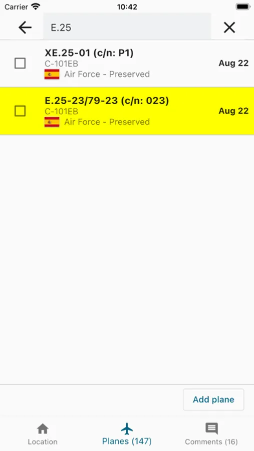 - check the aicraft you see on a location, to update the last note date and help fellow spotters