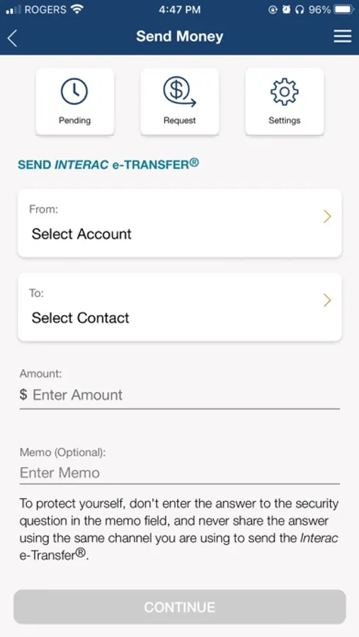 • Send an INTERAC e-Transfer to send money simply and securely.