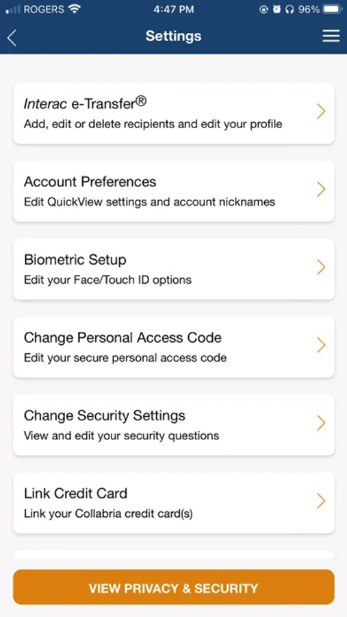 • Add and delete payees and add recipients from your device’s contact list