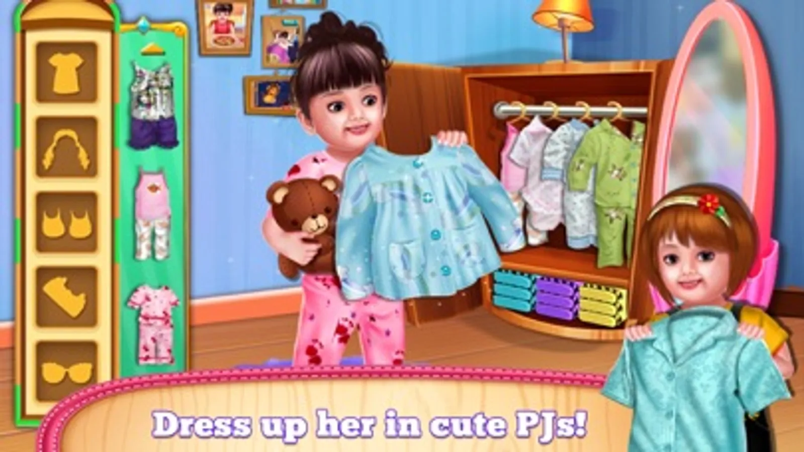 Baby Aadhya is going to sleep and she needs to perform some fun activities before going to sleep. For that reason, she needs your help. If you want to help baby Aadhya then please perform all the bedtime activities with her. We all should brush our teeth before going to sleep so help baby Aadhya to brush her teeth. After then give her a refreshing bath and provide her toys. There is also a counting star task where you need to help Aadhya to calculate the stars, remember you will not be able to add anything other than stars. Aadhya loves to see the constellations in the sky so for that please draw a constellation and make her happy. Play some peaceful music while Aadhya is sleeping and help her to get better sleep. And at the end don't forget to give Aadhya good night kisses.