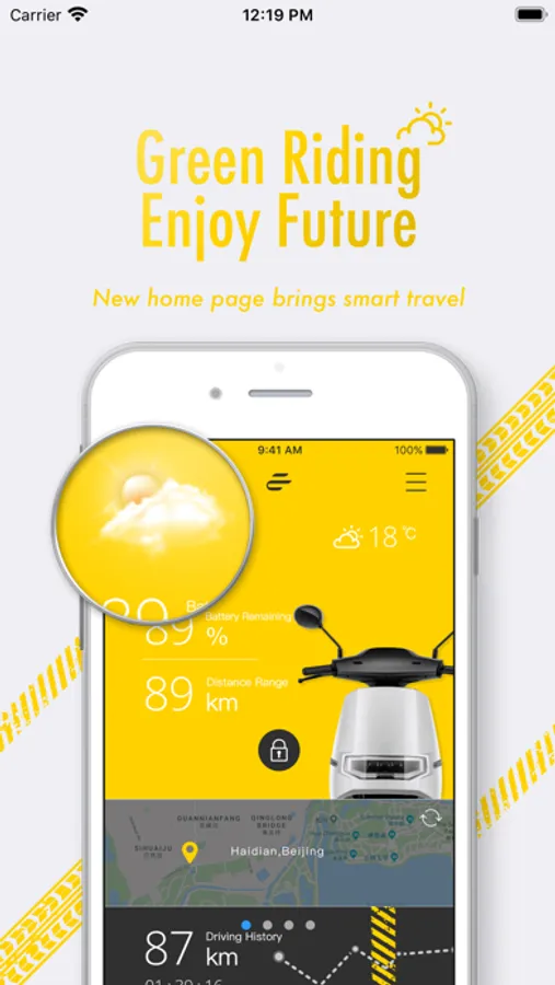 Real-time vehicle conditions. Users can check the vehicle location, remaining battery, remaining mileage and other information through the mobile App.
