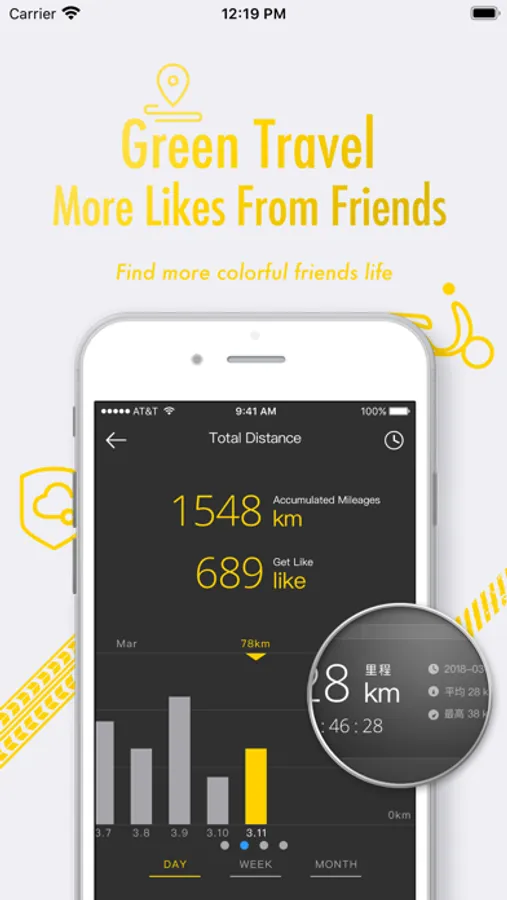 Cycling records. Users can instantly check their cycling records, including speed, cycling time, distance and other data.