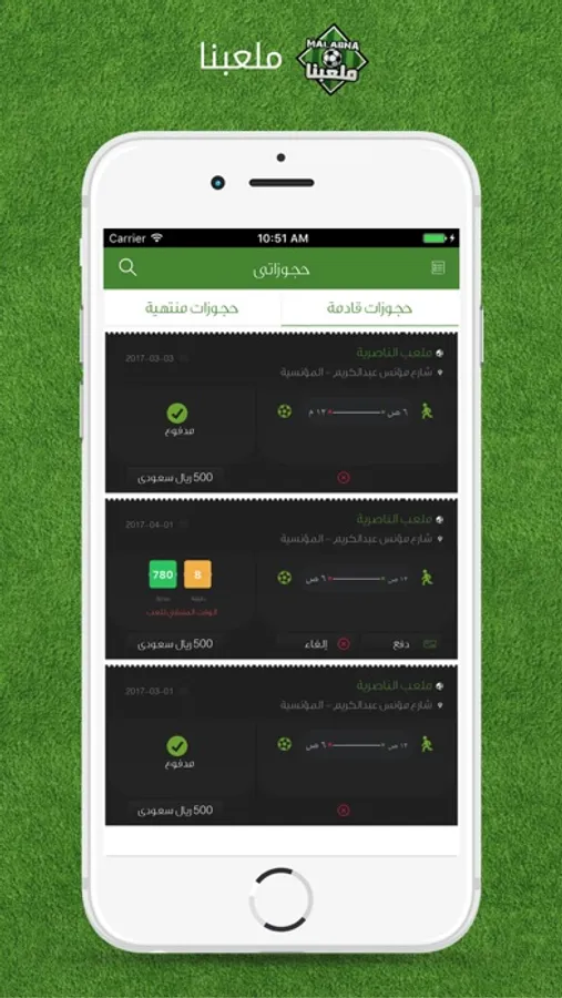 ويمكنك التسجيل بالتطبيق للحصول على كافة الخدمات المتاحة، مثل حجز الملاعب، والدفع، والتحقق من حجوزاتك السابقة والمستقبلية، وتقييم الملاعب التي قمت باختيارها، وكذلك إنشاء قائمتك المفضلة.
