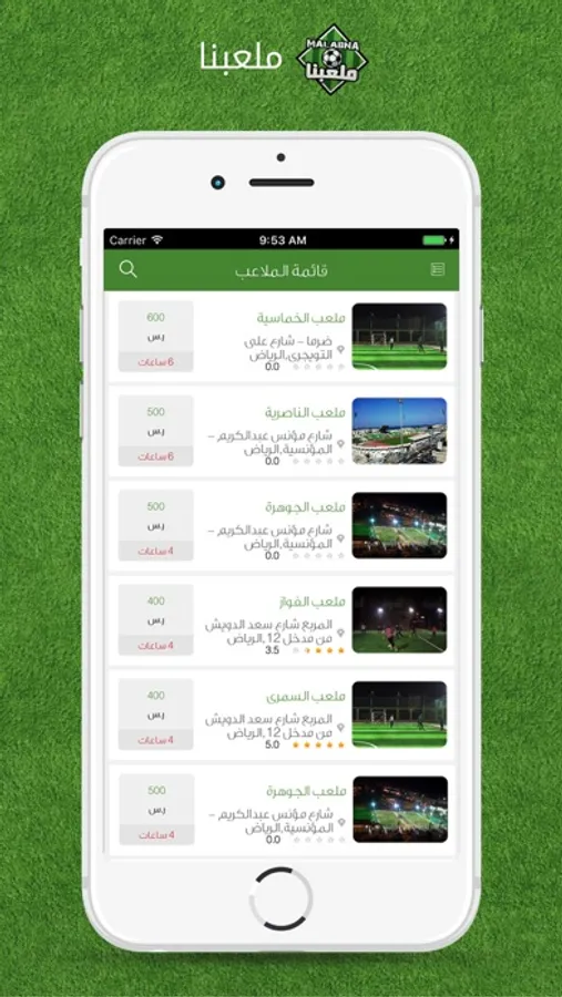 يتيح لك هذا التطبيق إمكانية البحث وإيجاد الملاعب الأقرب إليك وفقاً للمنطقة الجغرافية، واستعراض قائمة الملاعب وتفاصيلها، والتحقق من الفترات الزمنية المتاحة للحجز.