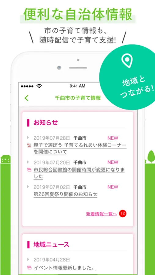 不安だらけの子育ても、自治体からの役立つ育児情報がお手元に届くので、安心して行えます。