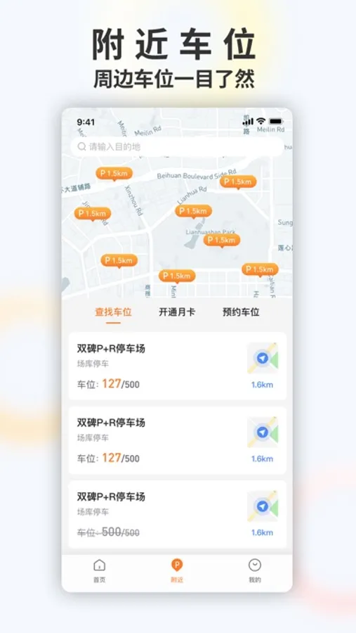 2. 支持根据当前位置推荐附近的车位并导航前往;