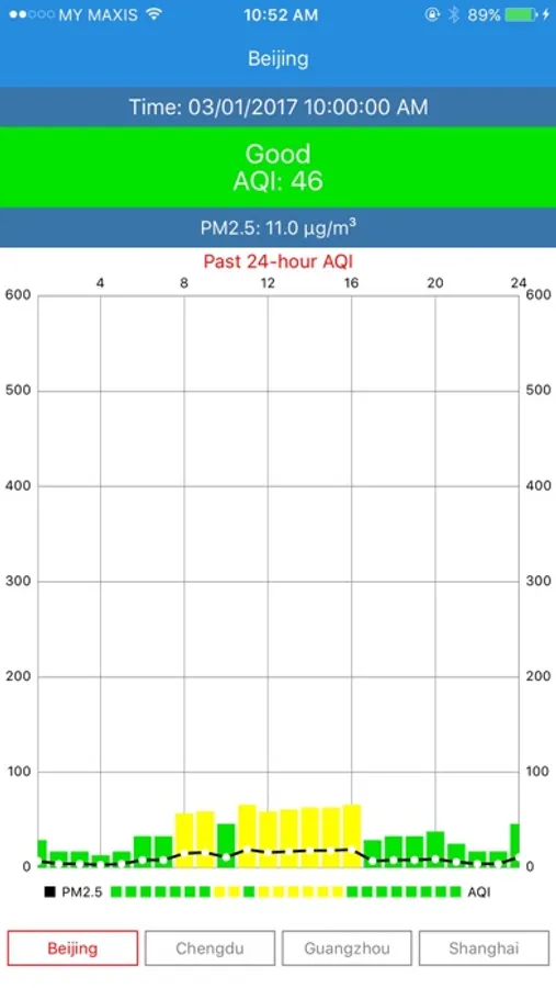 Simple app to check AQI and PM 2.5 data in US Embassy in Beijing, Chengdu, Guangzhou, Shanghai, Shenyang.