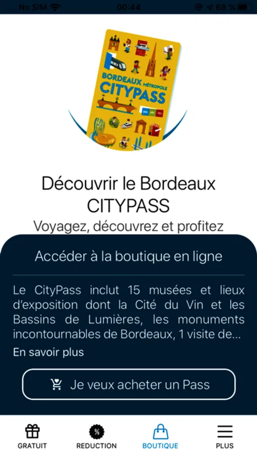 Cette application permet d’accéder à la liste des sites inclus dans le Bordeaux City Pass et d’obtenir toutes les informations pratiques : exposition du moment, horaires d’ouverture, localisation sur la carte Google Maps, photos, description, coordonnées, prestataires aux alentours.