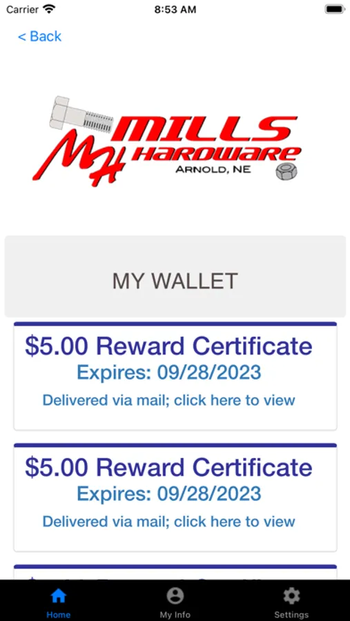 Mills Hardware opened its doors for business in October 1996. Terry and Dena Mills signed with United Hardware Distributing Company as their main supplier making them part of Hardware Hank co-op buying group.