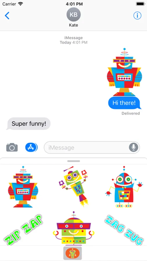 Express yourself with funny robots imagery that you can place anywhere in your iMessages. Layer robots and sentences over your photos and texts.