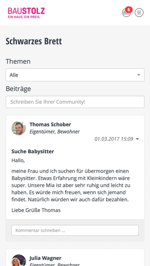 Tauschen Sie sich regelmäßig mit allen, die dem Baustolz-KundenPortal zugehören, aus: Bewohnern, Eigentümern sowie Ihrer Hausverwaltung.