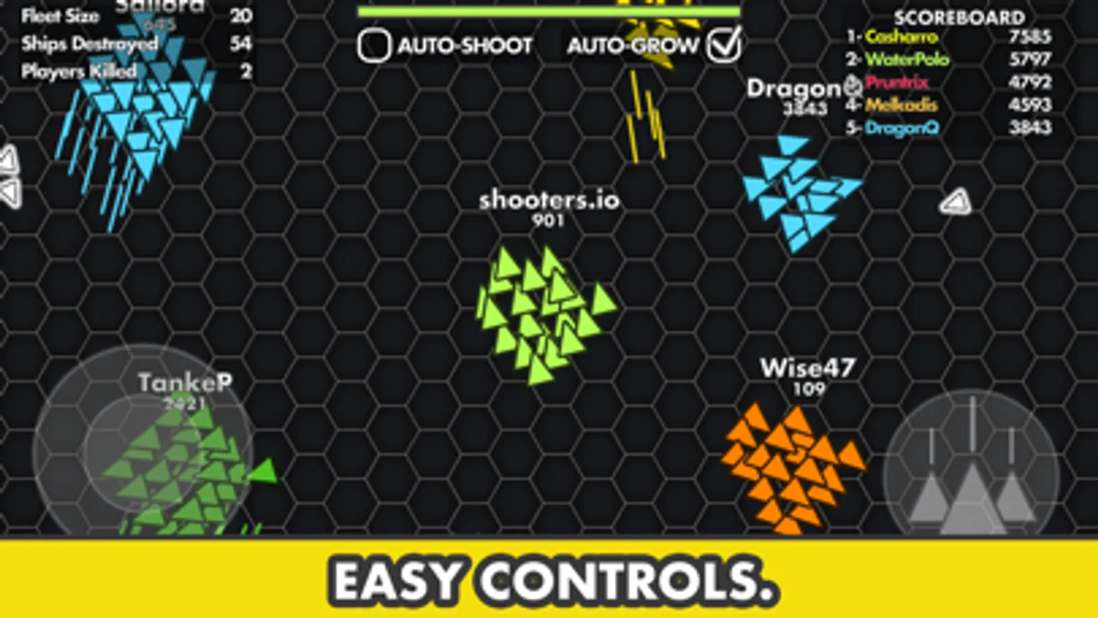 • Auto-grow and Auto-shoot toggles for unique strategies.