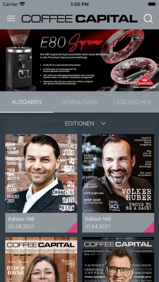 Wer die Welt von Kaffee und seinen Begleitern wie Cappuccino, Macchiatto, Latte Macchiatto, Espresso etc. verstehen will, wer mit to-go seine Umsätze steigern möchte, wer mit to-go-snack(ing) Umsatzsteigerungen realisieren will - der findet mit coffee|capital den direkten Insider. coffee|capital ist Lifestyle- und Avantgarde-Informant, Special Interest Magazin rund um coffee, to-go und to-go-snack. Schwerpunkt von coffee|capital sind die Segmente Coffeeshop, Espressobar, Roaster, OCS, Bakery, Backfactory, Shop, to-go, Gastro und Consumer. Nutzen Sie das Know-How von Profis.