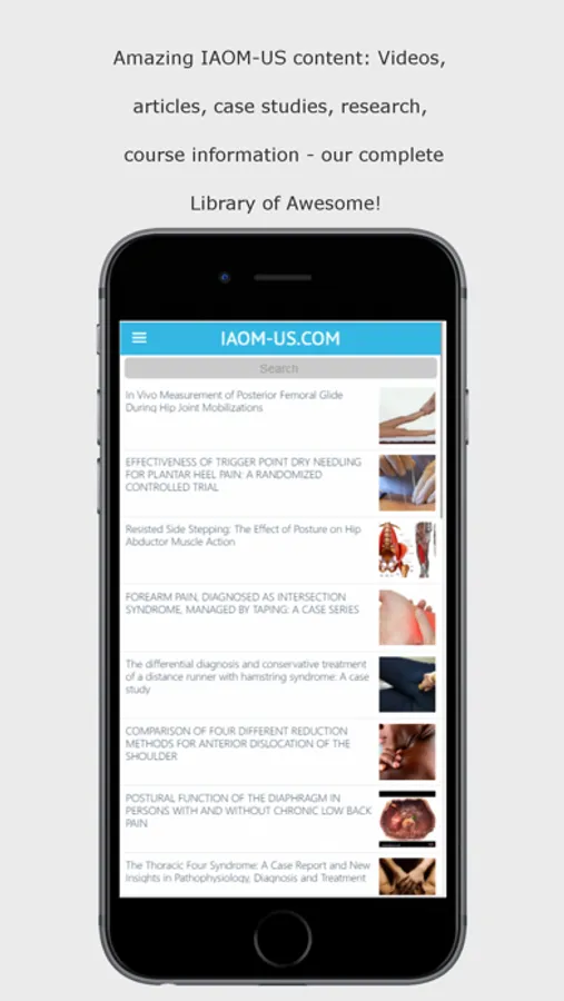 Orthopedic manual therapy techniques, studies, courses, and other knowledge artifacts are compiled into one, simple to use app.