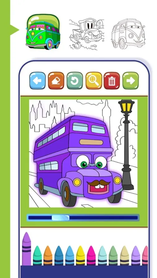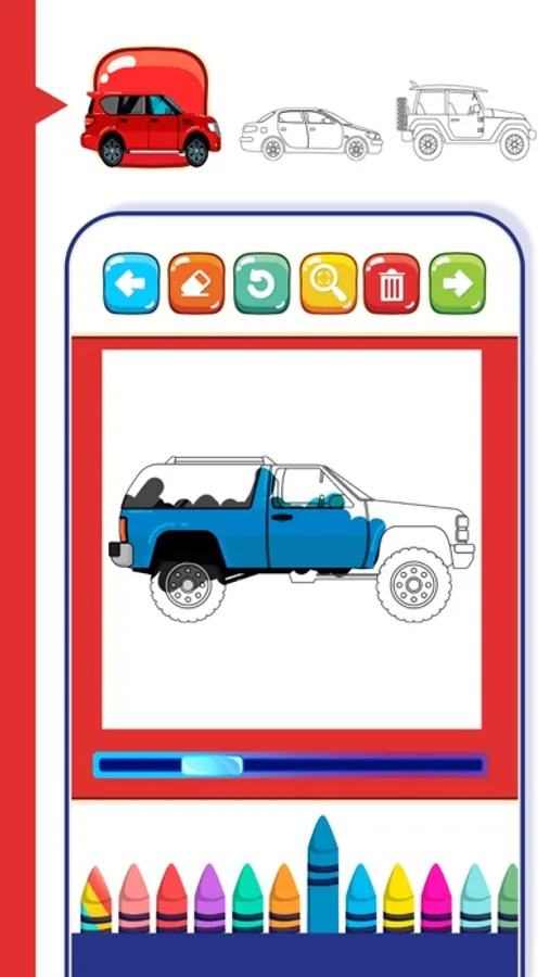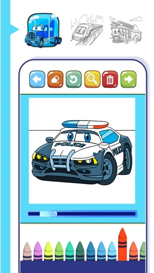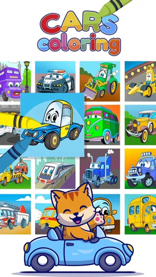 Discover the amazing world of the cars and the other vehicles. Color the best drawings of your favorite vehicles. An addictive game for all!