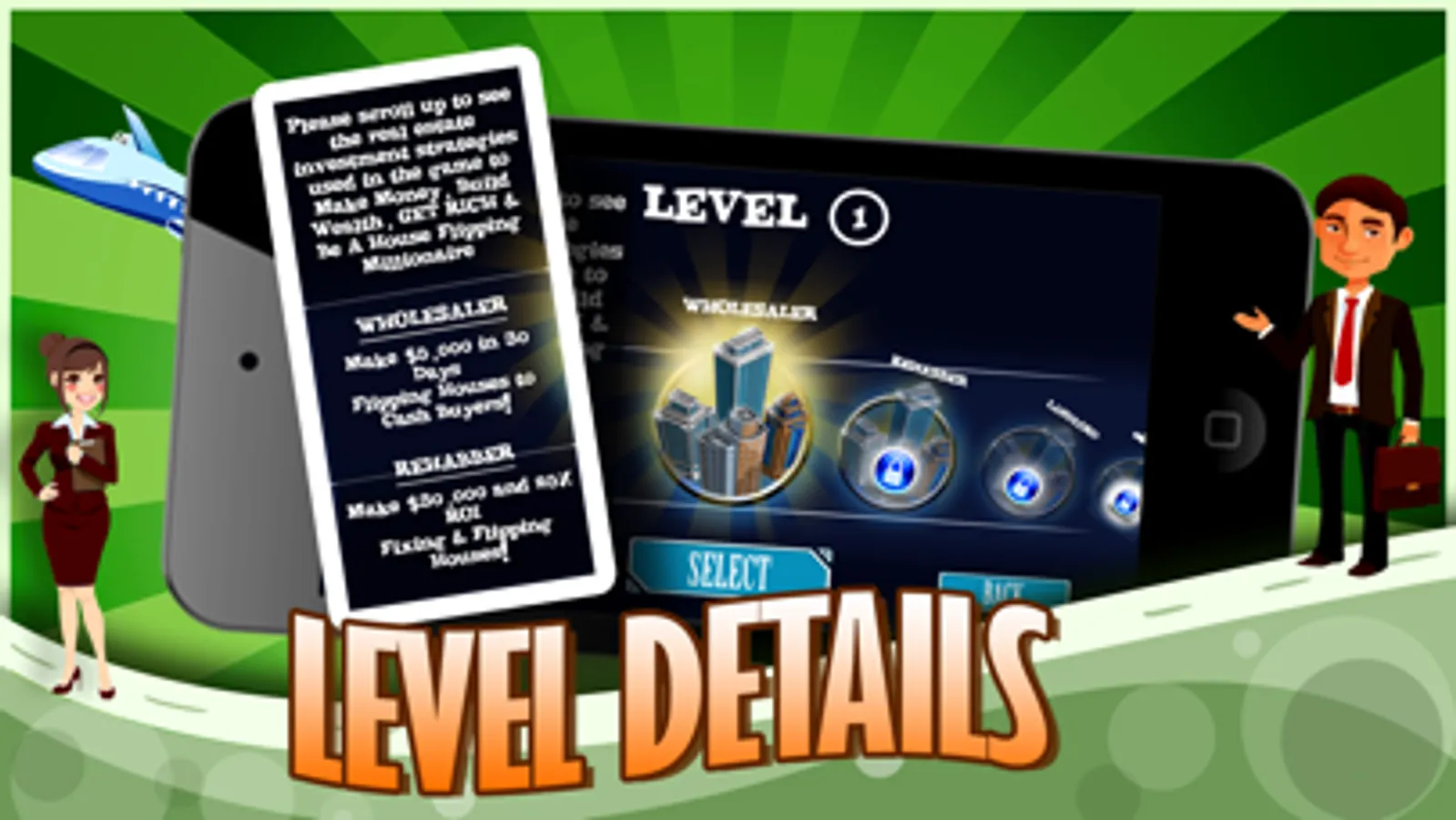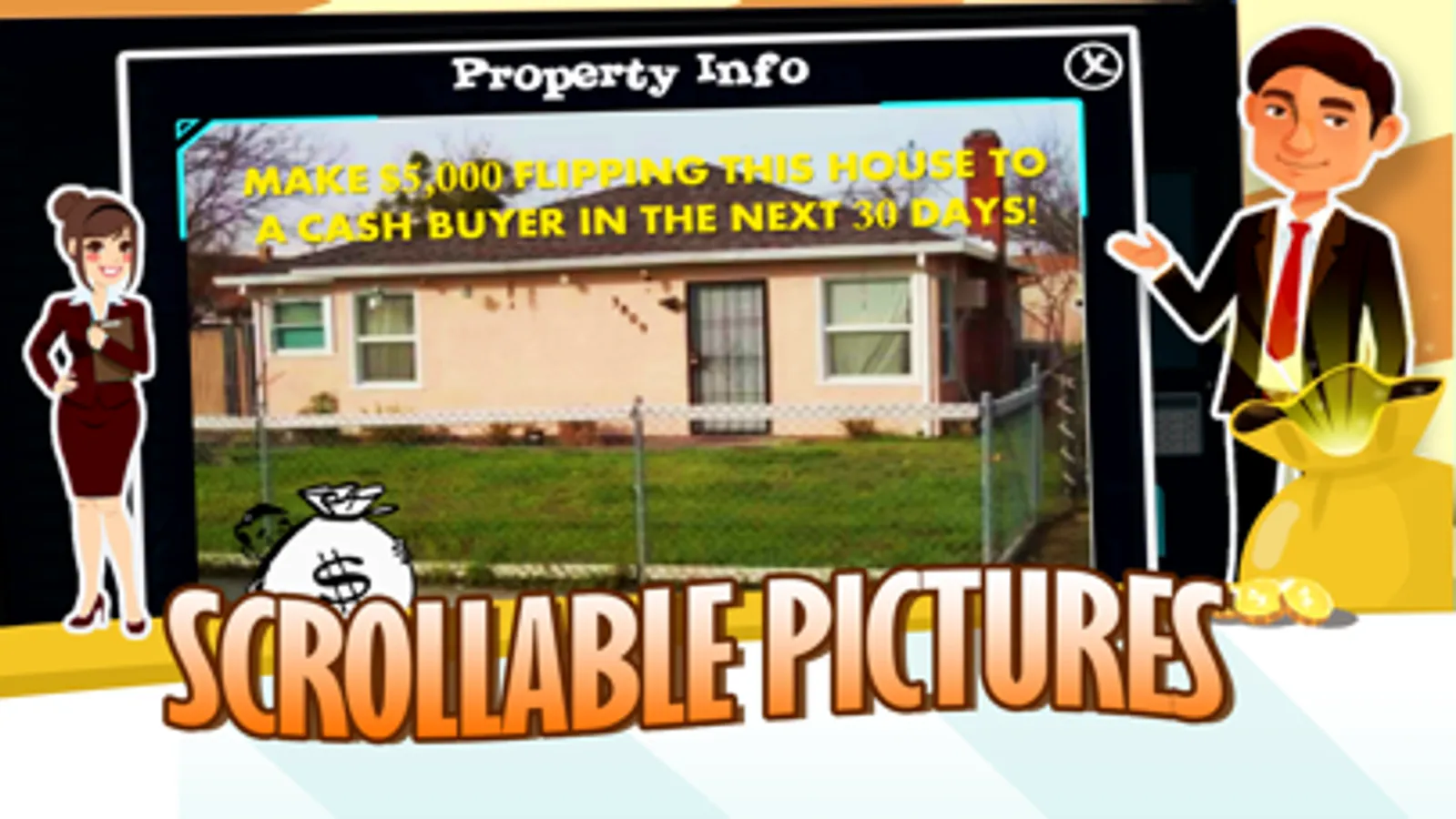 *** Earn financial achievement awards and progress quickly through the game while earning virtual cash through the various house buying investing strategies like wholesaling, rehabbing,