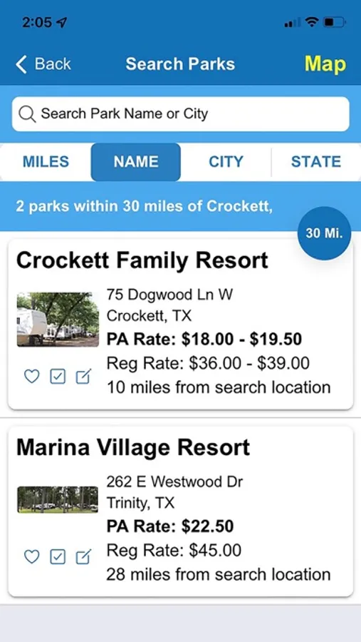 - Search for Campgrounds and RV Parks based on Name, Address, City, or State and include selected amenities, such as amperage, dump station, full hookups, pull thrus, wifi and many more.